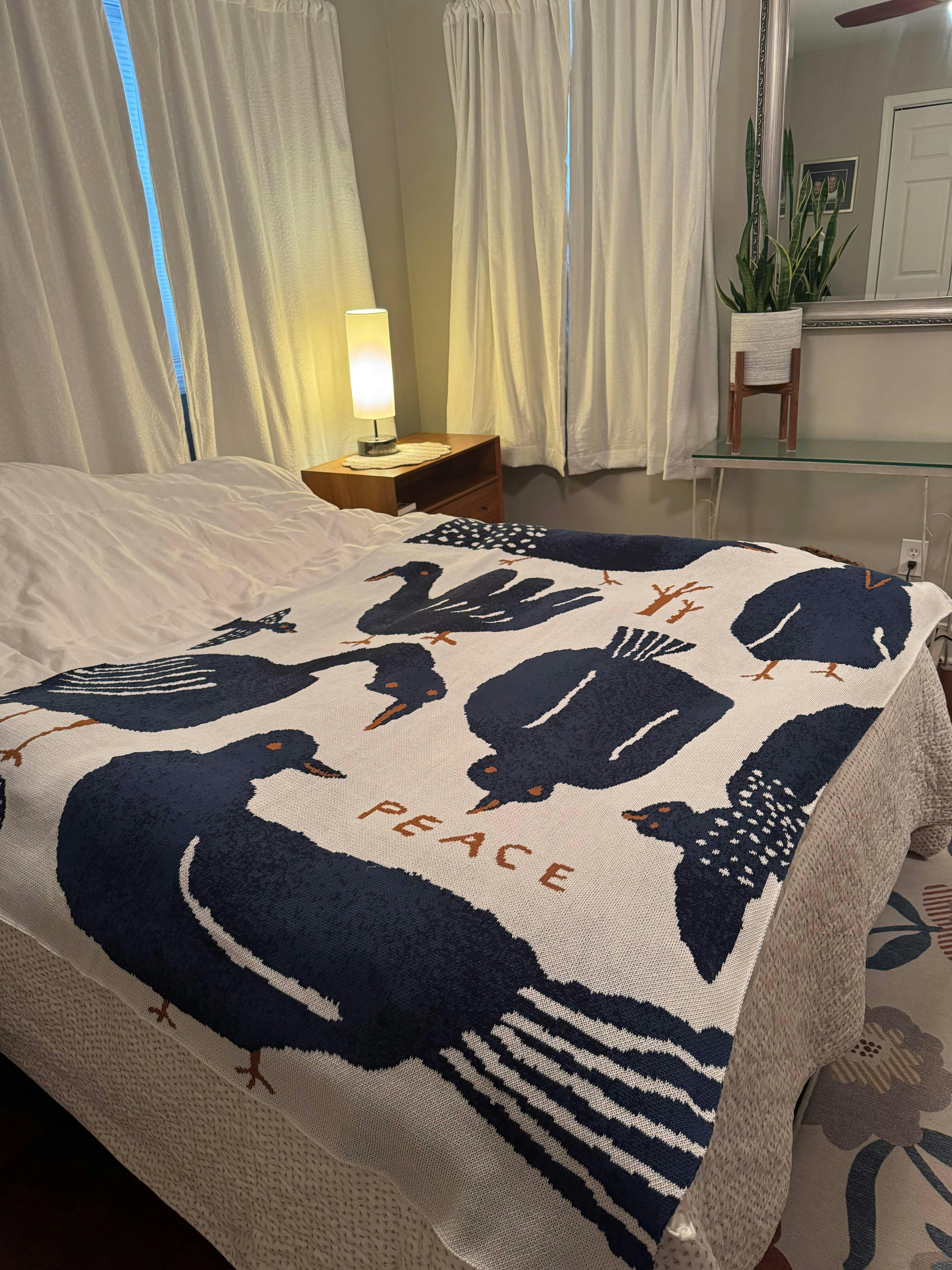 True, online shopping is fun and doesn’t require pants, but it can be hard to get a true sense of how something is going to feel or look through a screen, which is why we work hard to ship your orders out within 5 business days. If you live in the NY region, lucky you! You can visit us in person at the Artists and Fleas market in Brooklyn every weekend, where we have our own pop-up shop and where you’ll be able to touch our blankets and feel their quality in real life. We’re also in a few select stores, like Ours in Philadelphia.